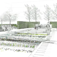 Working as a landscape architect, I generally design public squares and parks that have larger spatial dimensions. Here on the Campus we attempted to create a space that is intimate but at the same time rich in contrasts. You can feel this when you enter the garden through the tight spaces between the beech hedges, and suddenly the entire garden opens up in front of you. The basic idea was to honor and celebrate medicinal plants. To do this, we lowered the central plant bed by 60 cm. This allows the plants to appear even more valuable, almost beyond reach. It is possible to walk over the beds using two small bridges and view them from above, as if they were a carpet or a painting.