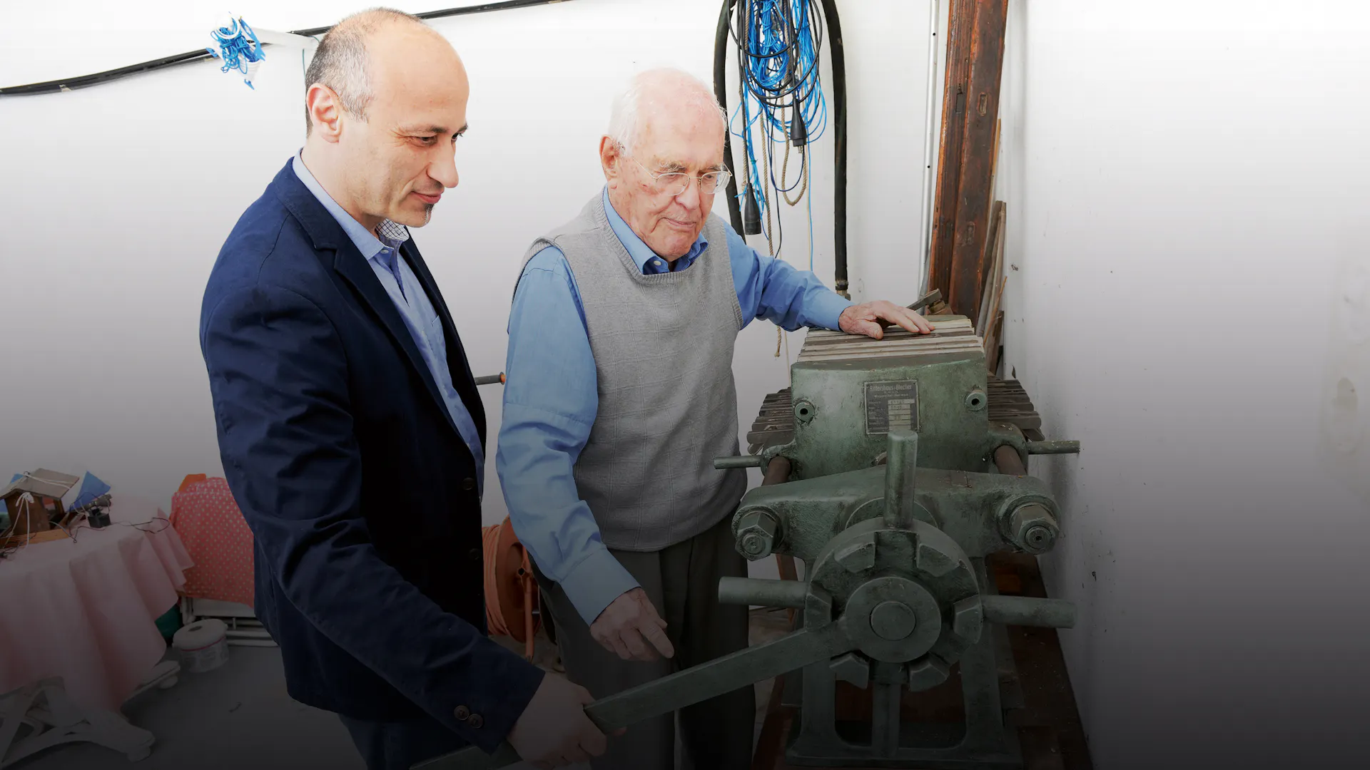 “We are in the process of clearing. We wish to sell the house and move into a retirement apartment as soon as one becomes available,” he explains on our arrival. And he adds that the time has also come to part with the utensils from his professional life. He had therefore called Cesare Sgueglia and offered him the filter press for his museum; the curator was delighted to accept the offer.