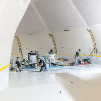 Inside the building, just as in front of the Pavillon, there is a hive of activity before the opening. While work on the façade is on the home stretch and gardening is in full swing on the outside, more than a dozen workers are busy finalizing the interior of the spacious building.