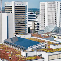 Solar panels and naturalized roofs are now standard on many buildings of the Novartis Campus.