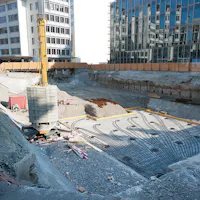 Earth probe drilling during construction of the building at Fabrikstrasse 18.