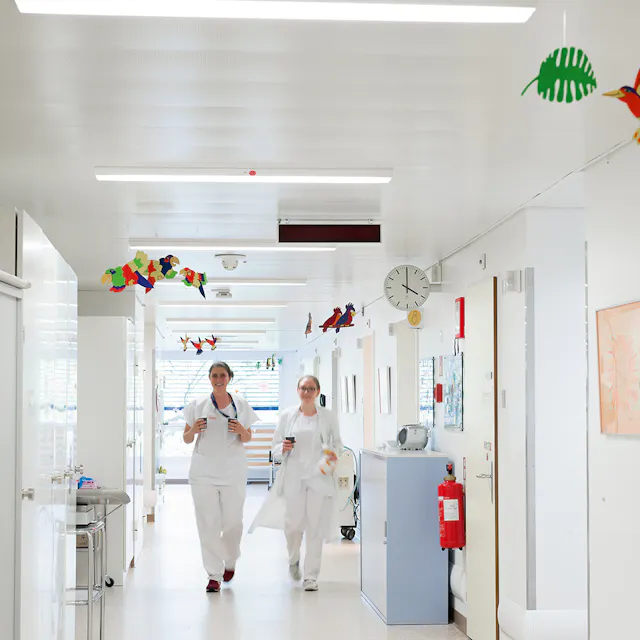 Janine Reichenbach takes a moment’s break, stands in the corner of the room and turns her attention to the nurses who go about their work. It is lunchtime, and the isolation ward for stem cell transplantation at the University Children’s Hospital Zurich – affectionately known here as the “Kispi” – is unusually busy. Lunch is brought to the patients and then cleared away, while nurses rush around with the necessary medication. While this is going on, Tayfun Guengoer, Head of Pediatric Stem Cell Transplantation, does his rounds, speaking briefly with his young patients and putting worried parents at ease. Janine Reichenbach’s break doesn’t last long – after just a few moments her phone rings.