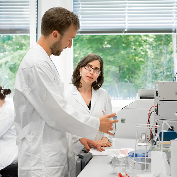 Ulrich Siler and Janine Reichenbach in the laboratory in Zurich.